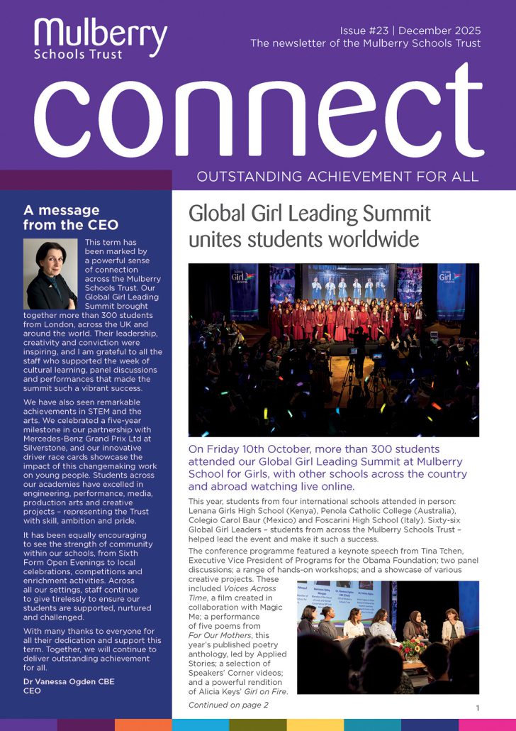 We are pleased to share Connect #23, the latest edition of the Mulberry Schools Trust newsletter, bringing together highlights from across our schools and wider Trust community.